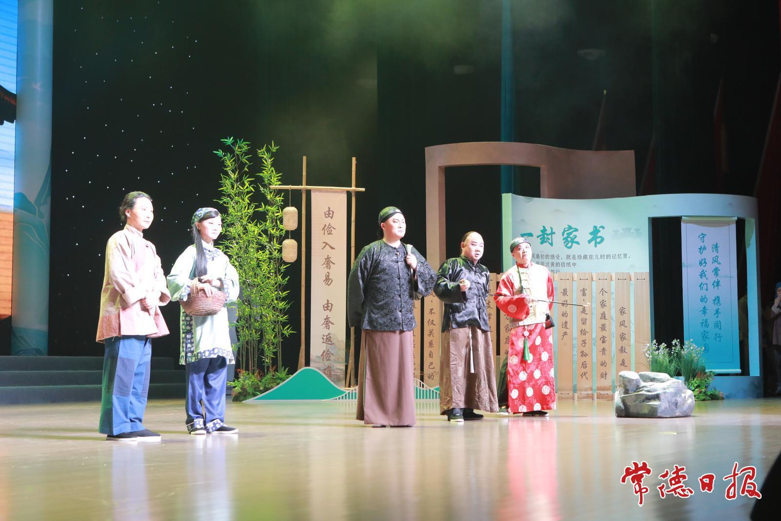 此次活动以主人公成长经历为脉络,以“家书”为载体,融合本地革命文化、社会主义先进文化、中华优秀传统文化中的廉洁元素,串联起不同时代的4个廉洁故事,通过汉剧小戏《黎公修书》、家书诵读《兰花草》、曲艺剧《珠履坊的传说》、情景朗诵《红色家书》等多种艺术形式,既融入本土文化的厚重底蕴,又结合时代发展的鲜明印记,层层递进展现主旨内涵,将家风传承与廉洁教育深度融合。