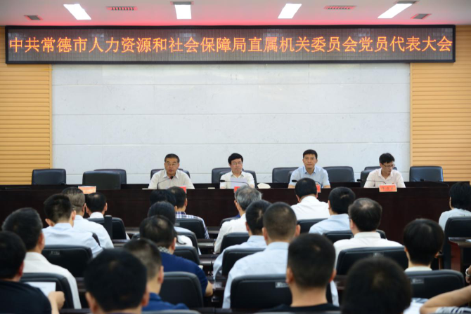 9月25日,常德市人社局召开党员代表大会,会议由市委组织部副部长、市人社局党组书记、局长马业文同志主持,局党组成员、局属单位主要负责人等90名党员代表参会。