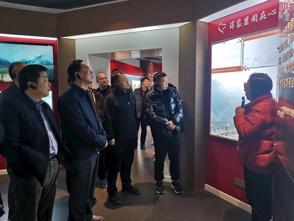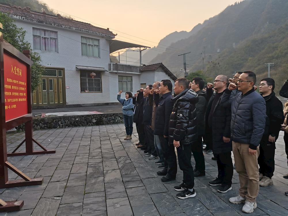 在向导的引导解说下,大家参观了王新法同志先进事迹展馆、下河生死状碑以及新法隧道,并在党旗下宣誓,重温入党誓词。当地接待工作人员和村民代表介绍了王新法来到薛家村3年多和乡亲们并肩战斗的日子,从讲述的一件件、一桩桩王新法在薛家村修路、架桥、发展生态茶园、关心空巢老人、关爱留守儿童的故事里,党员同志们再次受到震撼,为一个退伍老兵的高尚情怀所感动。